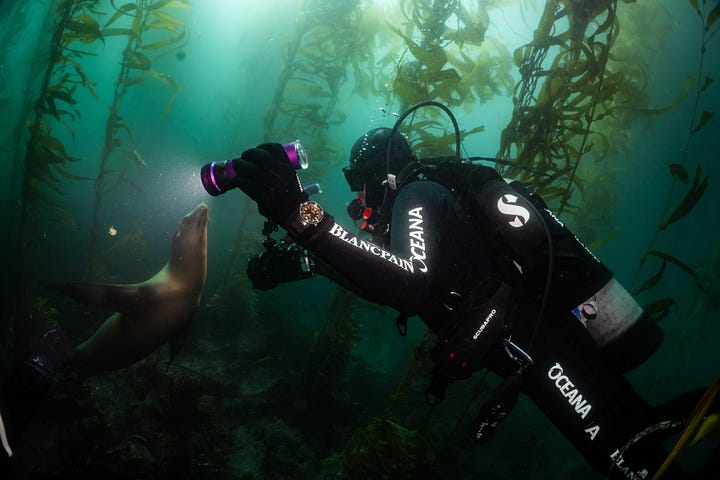 If you’ve been following me for a while, you’ll recall that I’ve done two previous expeditions with Oceana to California’s Channel Islands. You can read more about those here and here, so I won’t go into the background of my involvement, or the goals of these expeditions. But one notable result of the 2024 research was the successful adoption of a new California law phasing out set gill nets, those indiscriminate, massive sunken nets that catch anything that swims into them, endangered, desired, or not. The environmental DNA collected and analyzed on those two expeditions turned up over 12,000 unique species in the waters we analyzed around the islands. This third and final expedition of a trilogy underwritten by Blancpain would be something of a victory lap for Oceana, but also an opportunity to do some followup research.